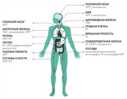 МРТ — головной, спинной мозг, молочные железы, связки и мышцы, органы малого таза и другие мягкотканные структуры.