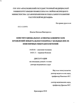 56. Шакало Ю.А. Возрастная анатомия эпидурального пространства шейного отдела спинного мозга человека: Автореф. дис. … канд. мед. наук. Красноярск, 2006.