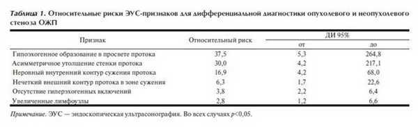 Цель настоящей работы - определение эффективности эндосонографии в дифференциальной диагностике доброкачественного и злокачественного стеноза ОЖП.