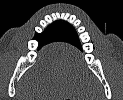 Фото 2: Аксиальное изображение каналов C-формы во вторых молярах