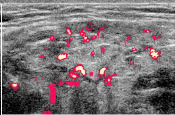 - Крупные солидные гипоэхогенные поражения и шейная лимфаденопатия должны вызывать беспокойство по поводу неходжкинской лимфомы или альтернативного диагноза.