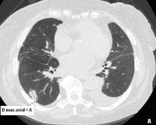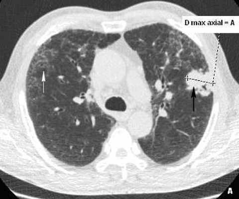 D max axial – максимальный диаметр консолидации на аксиальных срезах,