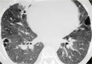 Для диагностики гиперчувствительного пневмонита чрезвычайно важны данные рентгенологического обследования, и особенно компьютерная томография (КТ). Компьютерная томография высокого разрешения (КТВР) является точным и чувствительным методом визуализации гиперчувствительного пневмонита, патологические изменения при этом выявляются более чем у 90% пациентов [14].