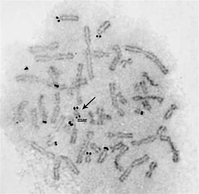 Обычно для точной идентификации необходим FISH-анализ с различными зондами; небольшие маркерные хромосомы часто состоят лишь из околоцентромерного гетерохроматина, выявляемого хромосом-специфичными FISH-зондами на сателлитную ДНК.