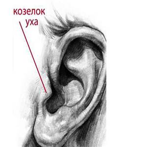 Козелок – это выступающий треугольный хрящ, расположенный по центру ушной раковины.