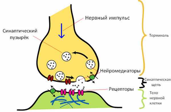 Пресинаптическая мембрана является окончанием отростка нервной клетки. Внутри отростка в непосредственной близости от мембраны имеется скопление пузырьков (гранул), содержащих тот или иной медиатор. Пузырьки находятся в постоянном движении.