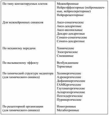 Синапсы классифицируются по местоположению, характеру действия, способу передачи сигнала.