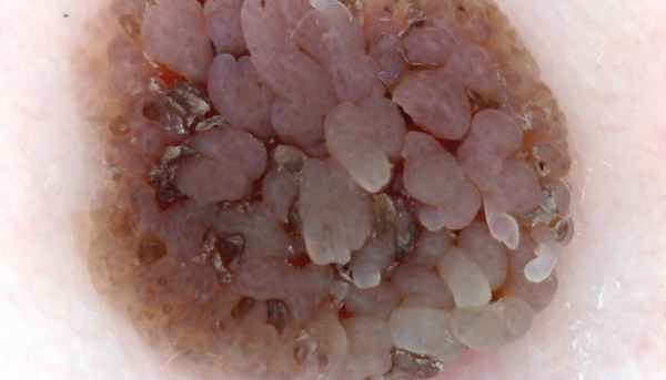 Также характерным признаком этого кератоза является наличие наслоений эпителиальных клеток. Такие бородавки имеют слабую пигментацию.