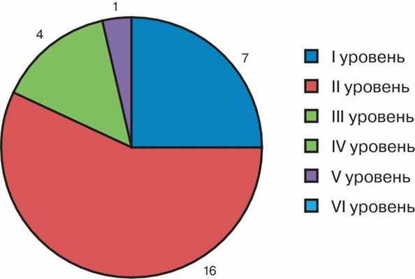 По результатам гистологического исследования было изучено распределение уровней инвазии по Clark (рис. 2). Рисунок 2. Распределение уровней инвазии (по Clark) МК, встречающейся в практике врача-дерматолога.
