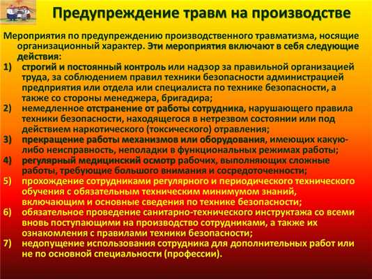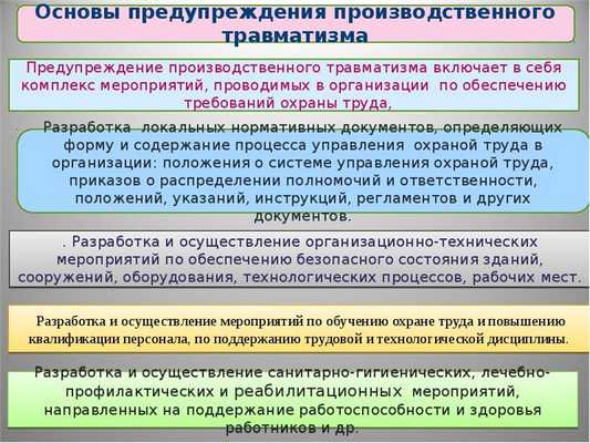 Основные мероприятия по предупреждению несчастных случаев на производстве