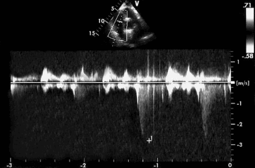 - Реверсирование систолического потока в легочных венах на эхокардиографии: этот признак помогает определить тяжесть регургитации, только если струя не эксцентрична. Он не очень полезен у пациентов с тяжелой болезнью левого желудочка, у которых систолический компонент легочного венозного кровотока уже недостаточен, и у пациентов с эксцентрической митральной регургитацией. Кроме того, на систолический поток в легочных венах влияют податливость левого предсердия, возраст, ритм и эксцентрические струи.