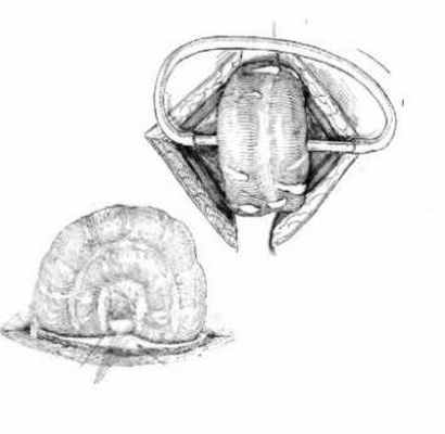 2. Клапанная, или резервуарная, илеостомия по Кокку применяется редко. Как правило, накладывается на втором этапе лечения неспецифического язвенного колита и диффузного полипоза после колпроктэктомии у молодых больных при отсутствии метаболических нарушений. Нецелесообразно одномоментное формирование резервуарной илеостомы после колпроктэктомии, а также наложение ее больным с невысоким уровнем интеллекта, лицам, страдающим болезнью Крона и после колпроктэктомии, сочетающейся с резекцией тонкой кишки.