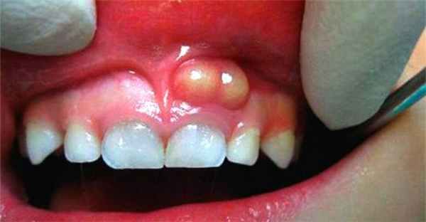 Проявляется четко ограниченным болезненным образованием округлой формы в придесневой области. Среди основных симптомов заболевания можно выделить: