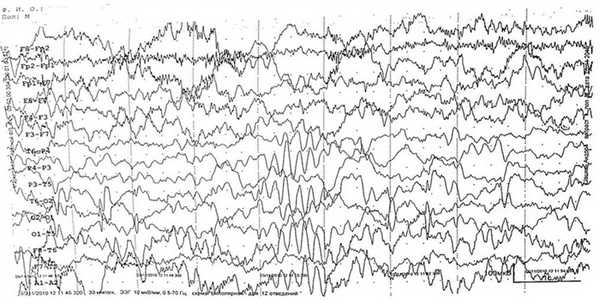 Результаты наших полиграфических исследований показывают, что важным фактором, влияющим на конечный результат (степень выявляемости эпилептической активности), следует считать функциональное состояние мозга. Эпилептическая активность в большинстве случаев выявляется у тех больных, у которых во время исследования регистрируются поверхностные стадии фазы медленного сна.