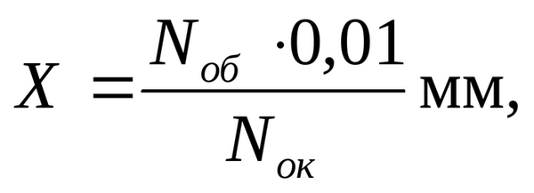 Например, если цена деления масштаба b = 1 мм, то при m = 10 точность нониуса равна 0.1 мм, а при m = 20 — 0.05 мм.