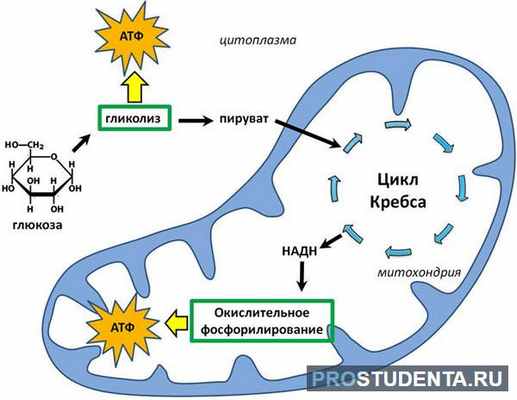 Процесс окисления и выработки энергии проходят в несколько стадий: