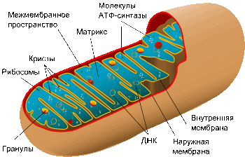 Так выглядит строение митохондрии.