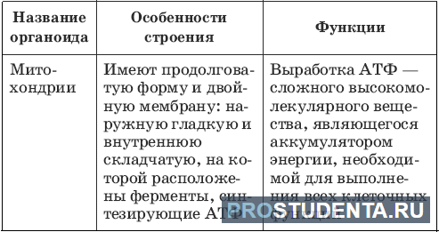 Ниже представлена таблица строения и функций митохондрий.