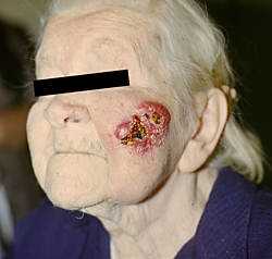 Особую группу составляют опухоли кожи с местнодеструирующим ростом – базалиомы (базально-клеточный рак по классификации ВОЗ). Для них характерен выраженный клинический полиморфизм – от едва заметных пятен розового цвета с поверхностным шелушением до глубоких язвенных поражений кожи, в некоторых случаях весьма обширных по площади.