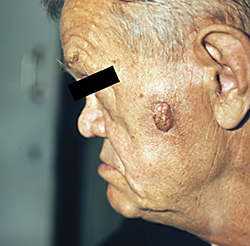 Наличие выраженного гиперкератоза или гиперпигментации может в отдельных случаях имитировать злокачественный процесс, однако длительность существования элемента без заметной динамики свидетельствует об обратном. Тем не менее необходимо уделять повышенное внимание солитарным образованиям с массивными, трудно отделяемыми роговыми наслоениями на открытых участках кожи у пожилых людей, так называемым сенильной кератоме и кожному рогу. Рядом авторов эти формы рассматриваются, как облигатный предрак, поскольку гистологически в зоне дермо-эпидермальной границы отмечаются нарушение структурной организации эпидермиса, повышение митотической активности, появление атипичных форм кератиноцитов.