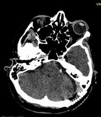 о Затем аксиальная и корональная Т1 ВИ С+ FS ствола мозга и цистерны ММУ, а также глубоких отделов лица: