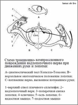Введение. Заболевание было описано в 1960 году H. Kopell и W. Thompson под названием «ловушечная» невропатия, которая обусловлена натяжением и ишемией надлопаточного нерва в канале, образованном вырезкой лопатки и перекидывающейся через нее верхней поперечной связкой.
