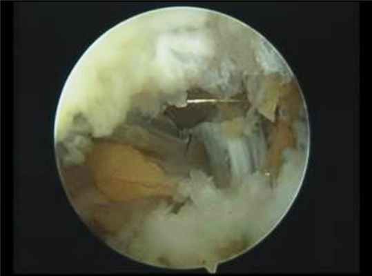 Рис. 4. Артроскопический вид связки надлопаточной вырезки и надлопаточного нерва после рассечения связки