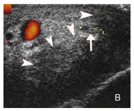 УЗИ оказалось наиболее эффективным методом в связи с мягкотканным характером невром: удалось визуализировать невромы Мортона у 100% пациентов в предполагаемых межплюсневых пространствах [3].
