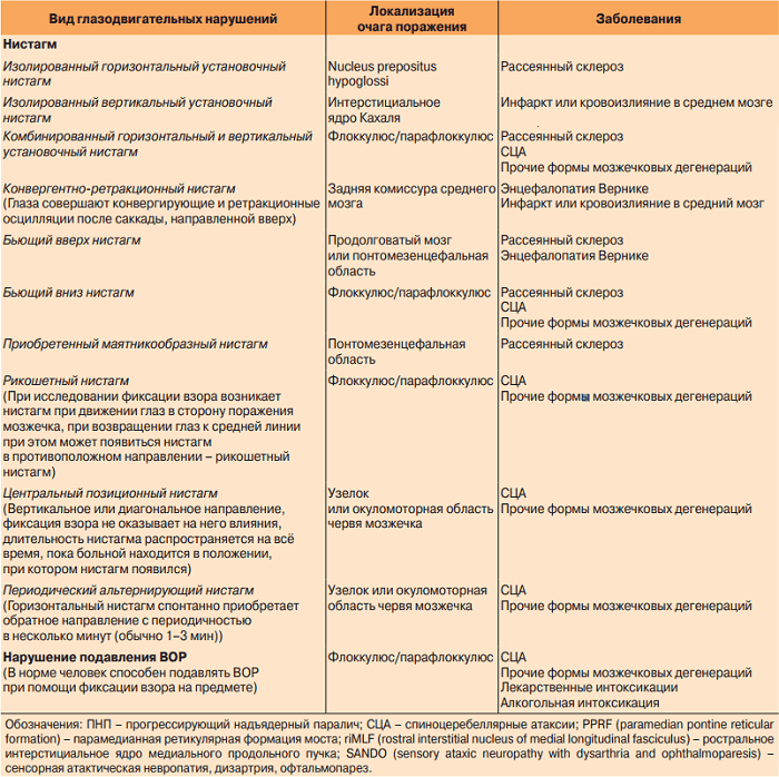 источник нижней таблицы: статья «Глазодвигательные расстройства в практике невролога» С.А. Клюшников, Г.А. Азиатская (журнал «Нервные болезни» №4, 2015) [читать]
