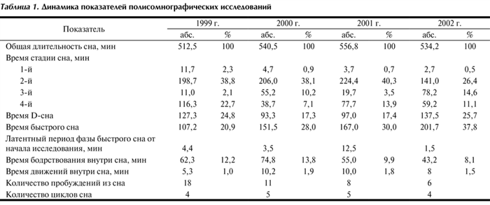 Таблица 1. Динамика показателей полисомнографических исследований