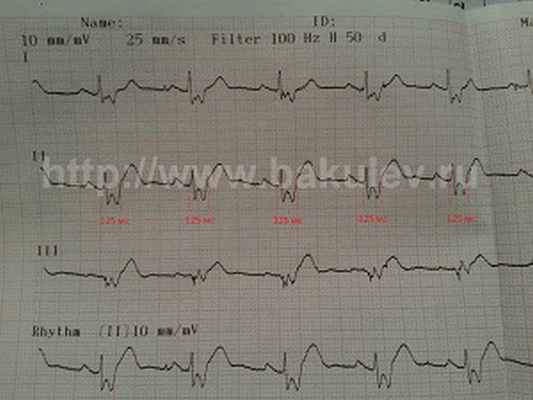 По данным ЭКГ были выявлены изменения, подтверждающие нарушение функции правого желудочка, обусловленные данной регургитацией. Электрический импульс по нему проходил более длительное время вследствие его гипертрофии и увеличения объёма, что выражалось в удлинении комплекса QRS до 125 мс (норма до 80 мс; риск внезапной смерти >180мс). При выполнении эхокардиографии наличие регургитации на клапане лёгочной артерии было подтверждено. Обратный поток крови из легочных артерий в момент расслабления правого желудочка имел умеренную вторую степень (Рис. 1 и 2).