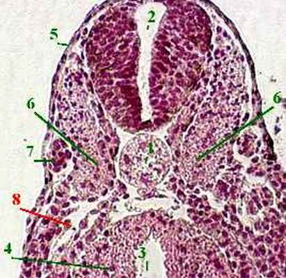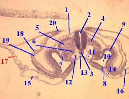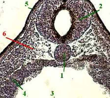 Нервная трубка и ганглиозная пластинка погружаются под кожную эктодерму, последняя смыкается над ними в непрерывный слой и дифференцируется в эпидермис. После срастания кожной эктодермы ганглиозная пластинка оказывается зажатой между нею и нервной трубкой (рис. 9).