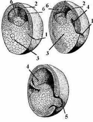 2. Способ гаструляции во многом определяется типом бластулы, который, в свою очередь, обусловлен типом исходной яйцеклетки (п. 5.1.3.2).