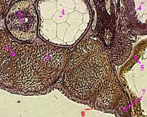 2. а) Первичная полоска (1) выглядит на поперечном срезе как утолщение в средней части зародыша;
