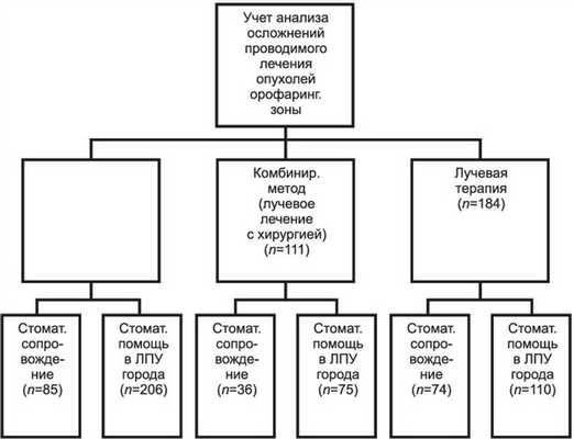 Анализ осложнений химиолучевого компонента комплексного лечения. В зависимости от продолжительности времени после облучения и химиотерапии местные повреждения делятся на ранние и поздние. Ранние повреждения развиваются в процессе лучевой терапии или в ближайшие 3 мес после нее (крайний срок восстановления сублетального повреждения клеток). Поздними считают химиолучевые повреждения, развившиеся после указанного срока, чаще — через несколько лет [6].