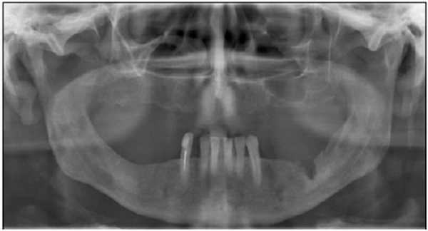 Кость челюсти (частично или полностью) становится хрупкой как мел и со временем может обнажаться [11]. Это является причиной сильной боли, а также вызывает проблемы во время приема пищи, разговора, проведения чистки зубов.