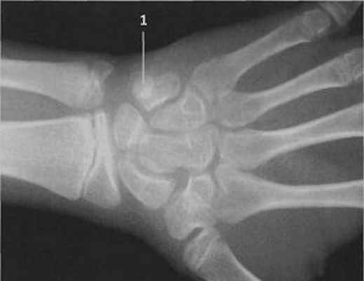 Пациент обратился на консультацию с жалобами на образование на кончике 2-го пальца правой кисти. Появление образования было связано с порезом 4 месячной давности с последующим медленным заживлением и периодическим инфицированием в ходе привычной повседневной деятельности. После заживления пациент отметил появление плотного образования под кожей. Периодически пациент отмечал появление покраснения и чувства распирания в связи с механическим воздействием, которые постепенно самостоятельно стихали. Пациент самостоятельно применял наружные заживляющие средства – без выраженного эффекта. Нарушения общего самочувствия за указанный период не отмечал. Рентгенологическое исследование показало признаки мягкотканного образования и отсутствие изменений кости дистальной фаланги.