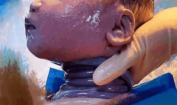 Как только головка ребенка появляется на свет, акушерка аккуратно убирает пуповину с его шеи.