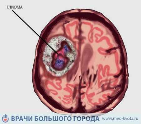 Глиома головного мозга встречается в 60% случаев новообразований головного мозга. Название «глиома» связано с тем, что опухоль развивается из глиальной ткани, окружающей нейроны головного мозга и обеспечивающей их нормальное функционирование. Глиома головного мозга представляет собой в основном первичную внутримозговую опухоль полушарий мозга. Она имеет вид розоватого, серовато-белого, реже темно-красного узла с нечеткими очертаниями. Глиома головного мозга может локализоваться в стенке желудочка мозга или в области хиазмы (глиома хиазмы). В более редких случаях глиома располагается в нервных стволах (например, глиома зрительного нерва). Прорастание глиомы головного мозга в мозговые оболочки или кости черепа наблюдается лишь в исключительных случаях.