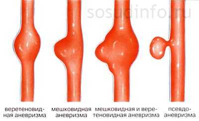 Риск разрыва аневризмы аорты зависит от ее строения, объема и причины. Так, выделяют мешковидные и веретеновидные аневризмы. Мешковидные образования представляют собой очаговое выпячивание одной из стенок сосуда, а веретенообразные – диффузный процесс, затрагивающий весь периметр аорты. Мешковидные расширения часто заполнены тромботическими наложениями, укрепляющими истонченную сосудистую стенку, поэтому шансов разорваться больше у веретенообразной аневризмы.
