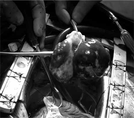 Пациент был переведен 08.08.14 в кардиохирургическую реанимацию ГБУЗ АО «ПГКБ им. Е.Е. Волосевич» из АОКБ для оперативного лечения. 18.08.14 выполнена операция (кардиохирург - А.Н. Шонбин): удаление опухолей ЛП и ПП (рис. 3).