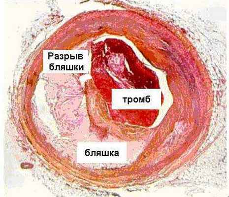 Разрыв нестабильной атеросклеротической бляшки с образованием тромба