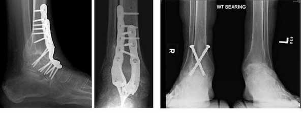 Больше подходит для пожилых малоактивных пациентов, так как сильно нарушает биомеханику ходьбы. Позволяет значительно снизить болевую симптоматику за счёт полного исключения движений в повреждённом суставе. Артродез может быть выполнен с использованием множества различных фиксаторов и методик в зависимости от предпочтений и возможностей оперирующего хирурга. Приводит к быстрому развитию артроза в подтаранном суставе (50% через 10 лет).
