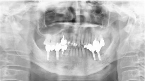 Фото 2. Ортопантомограмма пациента до лечения.