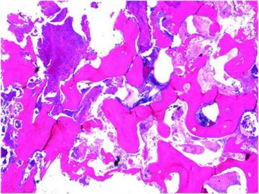 Фото 5. Гистологический вид резецированного участка нижней челюсти (окраска гематоксилин-эозином).