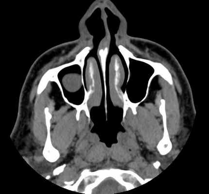 Здоровые околоносовые пазухи на снимке по оттенку схожи с глазницами. В случае развития воспаления они приобретают более темный оттенок с белесым, «молочным» содержимым. Обычно ровные края пазухи могут быть искривлены, кроме того, могут наблюдаться утолщения локально или по всему краю пазухи. Такая картина свидетельствует о том, что в пазухах развилась патология.