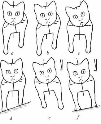 Благодаря совокупному действию этих рефлексов голова и тело кошки принимают нормальное положение, конечности тонически разгибаются и готовы принять вес тела, когда животное достигнет земли.