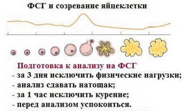 - Если у женщины в первой половине и середине цикла уровень ФСГ снижен, то это является веским основанием подозревать ановуляцию, то есть менструальный цикл, в котором не происходит созревания фолликула и выхода яйцеклетки. Зачать малыша в таком цикле невозможно.
