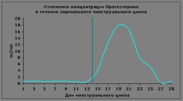 В норме прогестерон начинает активно вырабатываться в середине цикла в день овуляции и его содержание растет по мере начала работы желтого тела на месте лопнувшего фолликула.