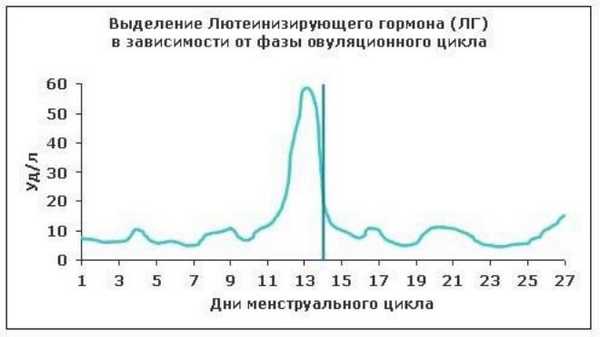 Лютеинизирующий гормон повышается незадолго до овуляции, и на его определении основаны существующие экспресс-тесты для домашнего использования. В первой половине цикла в норме у женщины уровень этого вещества в крови составляет от 2,4 до 12,6 мМЕ/мл, в период за сутки до наступления овуляторной фазы происходит скачок гормона до 14-96 мМЕ/мл, а уже во второй фазе цикла концентрация гормона невысока — от 1 до 10,5 мМЕ/мл.